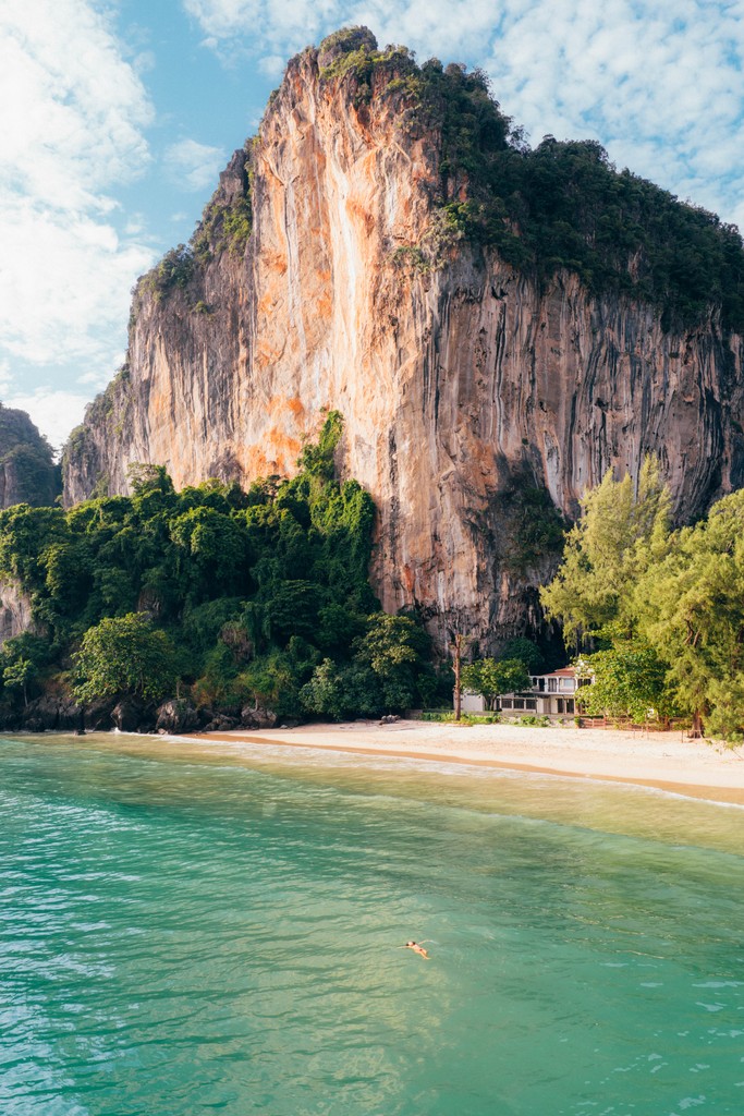 Railay será nossa base, com praias de areia fina, paredões de pedra e o mar mais azul que já vimos.